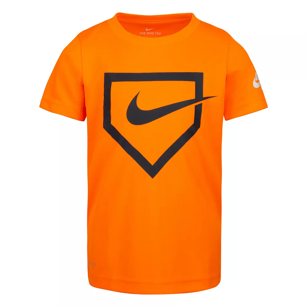 Your little athlete will love his look in this boys’ baseball diamond Swoosh logo graphic tee from Nike.