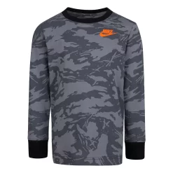 Featuring a trendy camo print and eye-catching Futura logo on the chest, this boys’ long sleeve tee from Nike is sure to be one of his favorites.