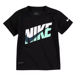 Dri-FIT interlock will help keep him dry and comfortable while a cool Nike logo graphic elevates his look in this boys’ athletic tee.