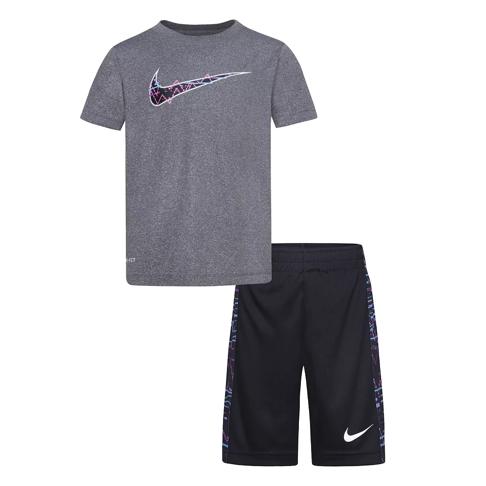 Coordinate him in sporty Nike fashion with this boys’ tee and shorts set.