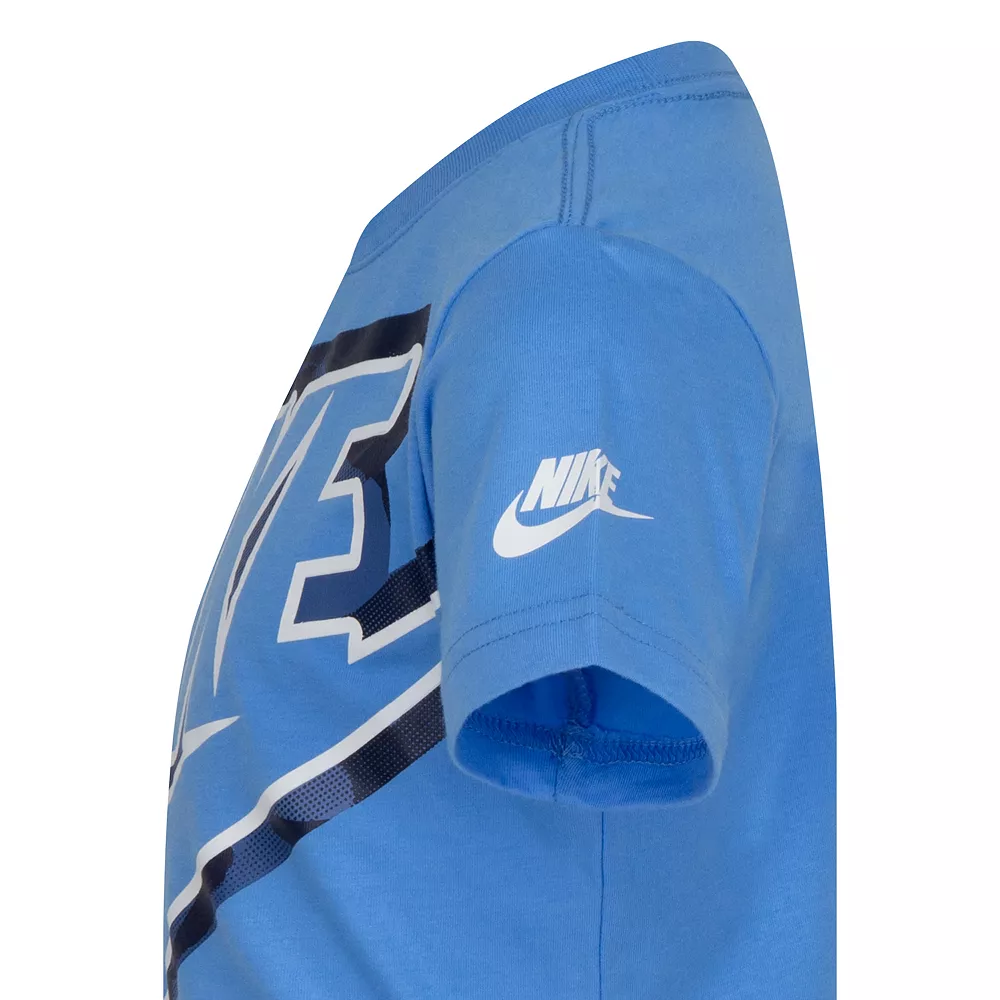 He’ll be sure to stand out in this boys’ big Futura logo graphic tee from Nike.