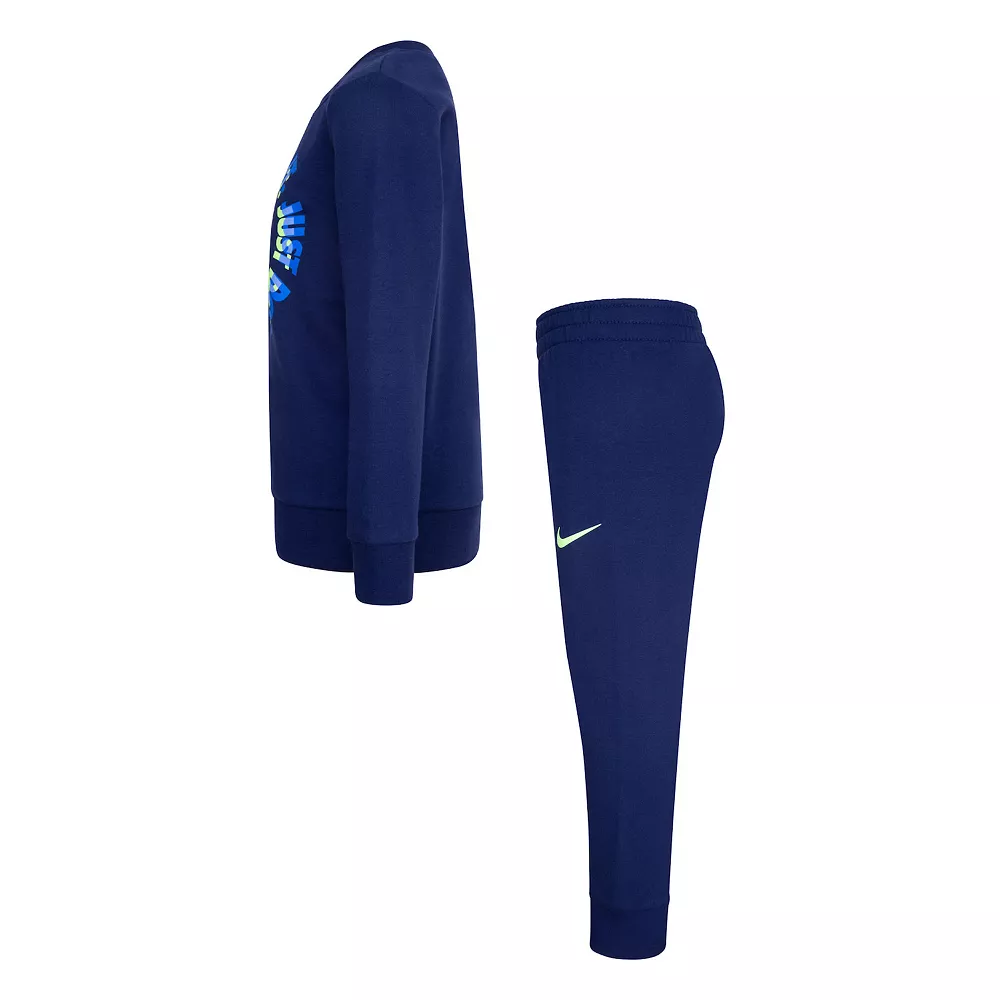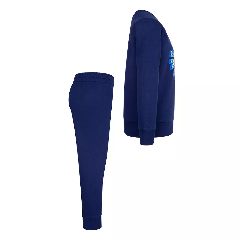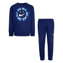 Keep his look fresh in this boys’ smiley face “Just Do It.” logo graphic crewneck sweatshirt and joggers ensemble from Nike.