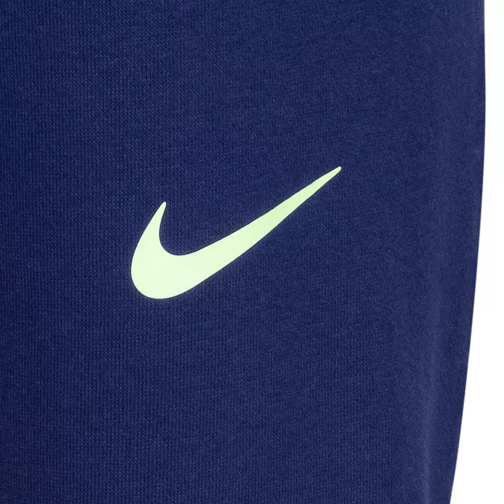 - Pants: elastic waistband, Nike logo at hip, jogger cuffs
