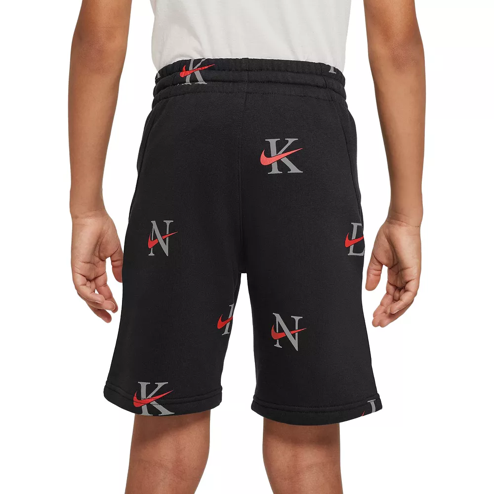 Flex the Nike brand in pure comfort with these boys’ fleece shorts. The allover Nike print of these boys’ shorts lets him show off his brand love.