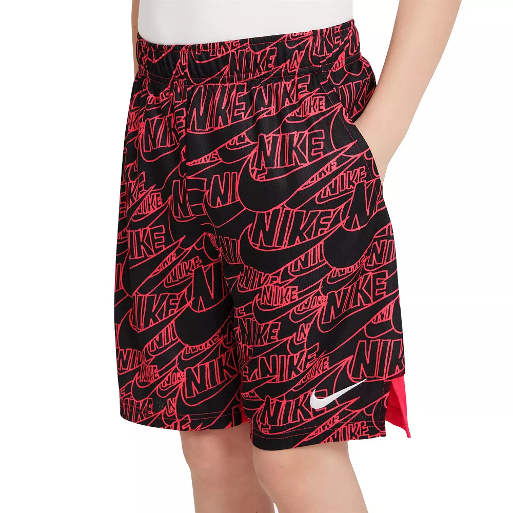 These Nike Dri-FIT boys’ shorts rep everything Swoosh life with a bold print. Sweat-wicking fabric means you’ll stay dry and comfy no matter how long games and playtime last.