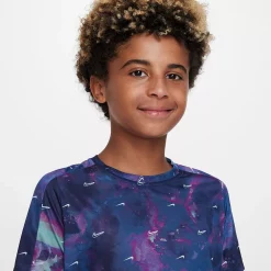 Make practice and playtime even more exciting whenever you pull on this Nike Dri-FIT boys’ top. Made with fabric that will help you stay cool, you’ll feel confident, whether it’s playing hide-and-seek with your buddies, or working on your skills at the park.