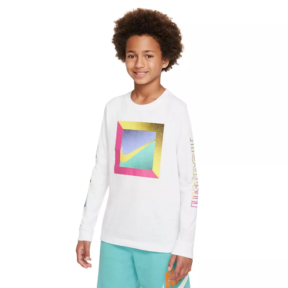 An everyday long-sleeve boys’ tee that’s stamped with a Nike Swoosh? We’re totally in.