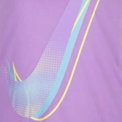 - Tee: moisture-wicking, Dri-FIT interlock knit fabric, crewneck, short sleeves, graphic Swoosh on front.