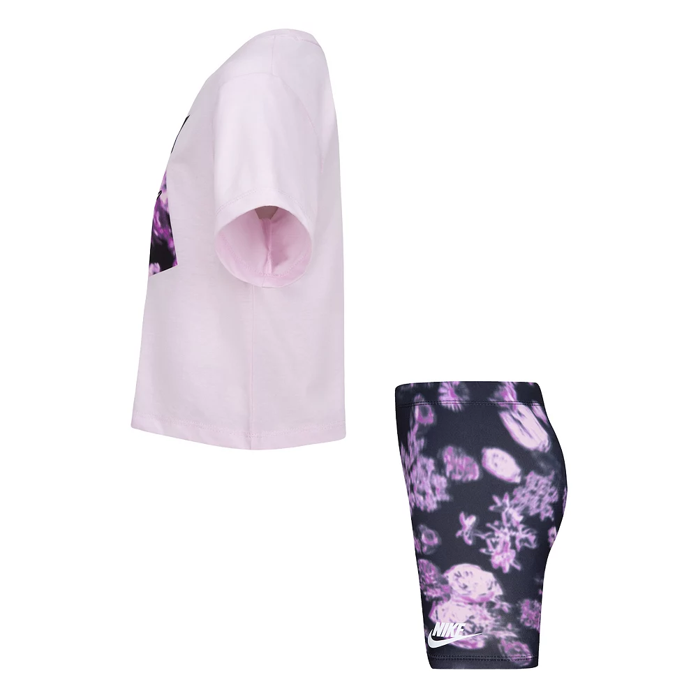 She’ll sport a winning look in this Girls 4-6x Nike Boxy Graphic Tee and Bike Shorts Set.