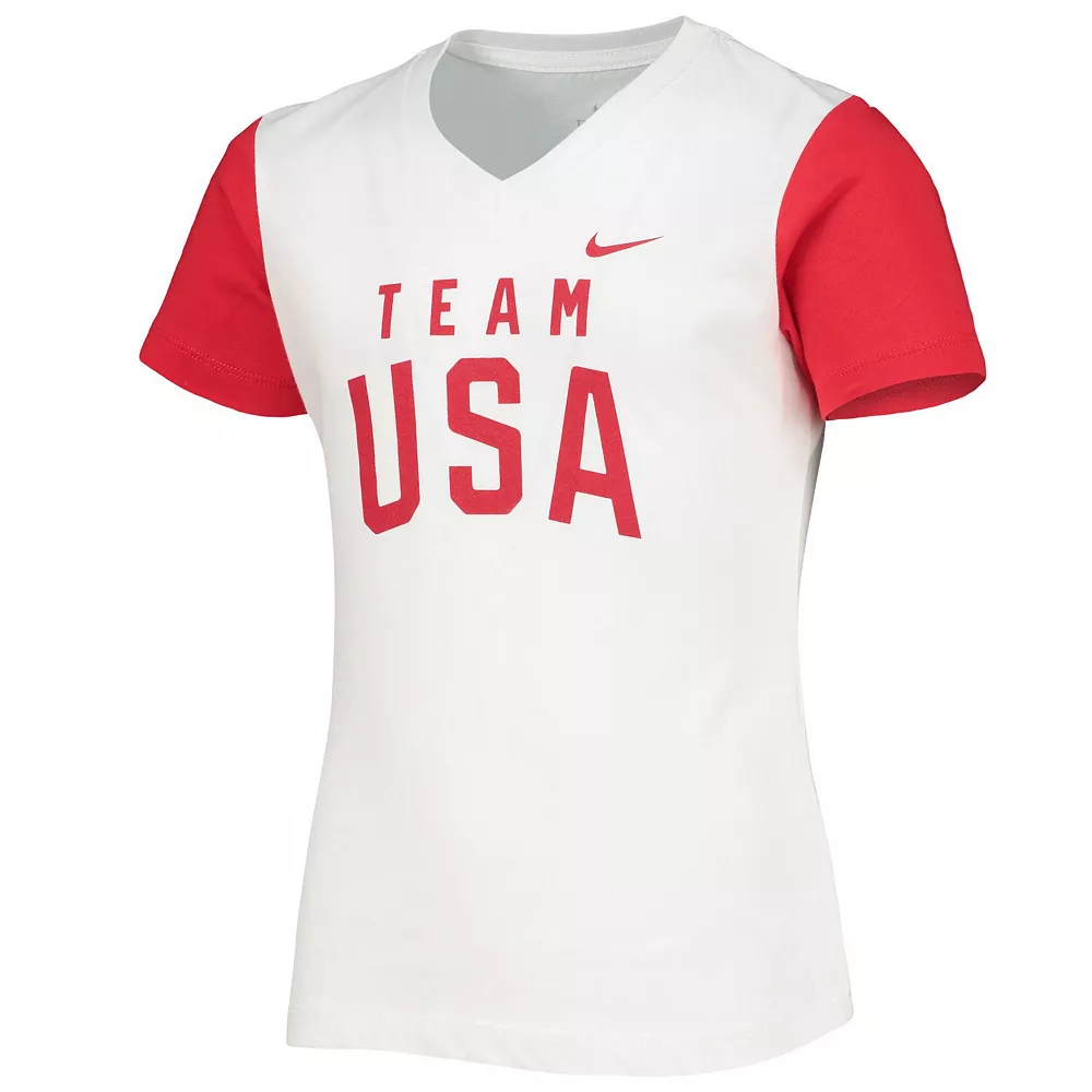 Help your kiddo showcase their love for their compatriots by snagging this Team USA Color Block T-shirt from Nike. It features a soft cotton design that’s sure to keep your youngster comfy as they cheer the athletes of Team USA all the way to the podium. In addition, its V-neckline adds to its relaxed design.