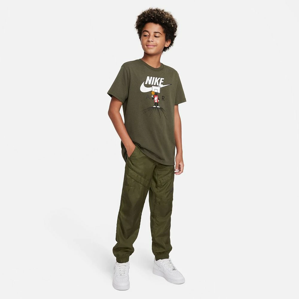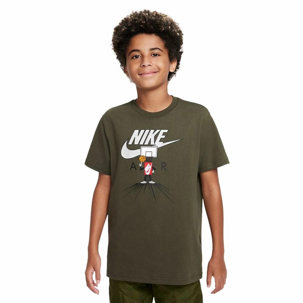 Hoopers unite! This loose-fitting kids’ Nike T-shirt shows our favorite shoebox, Boxy, getting warmed up on the courts and ready for a pickup game of 1-on-1.