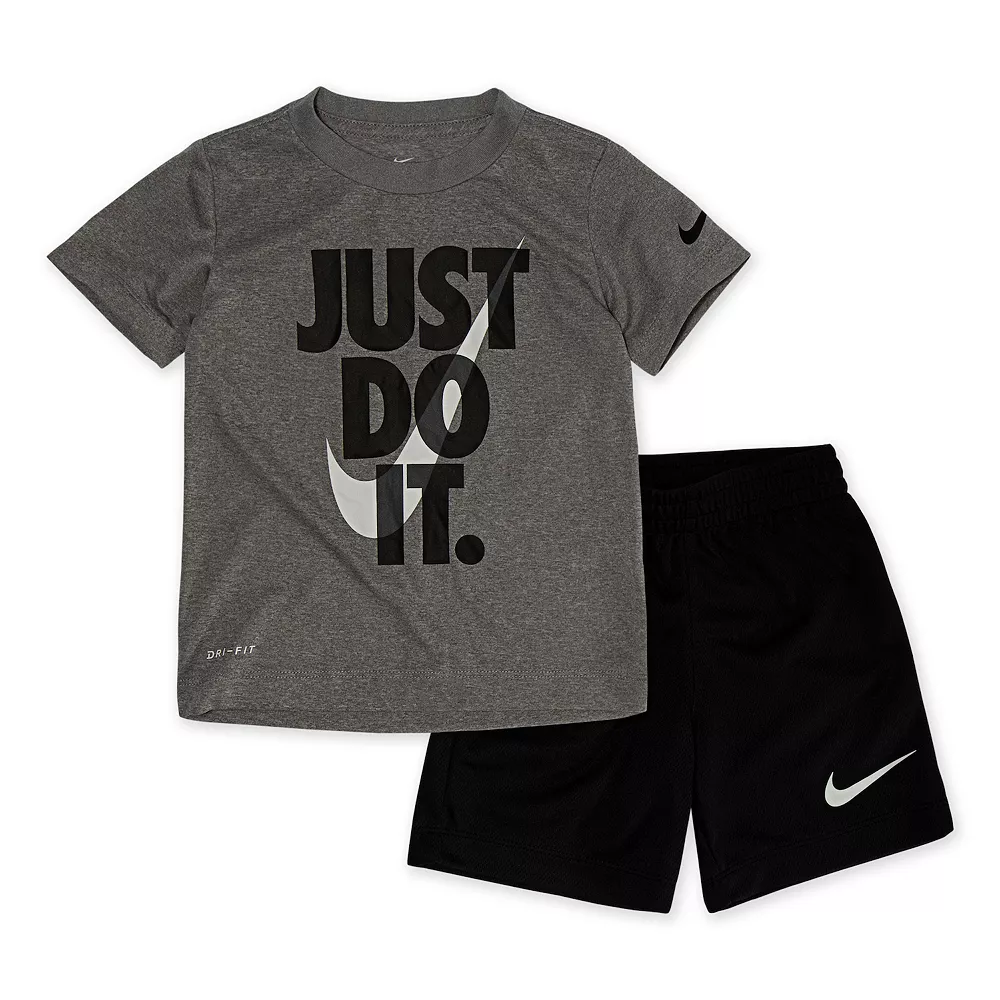 Keep him sporty in this boys’ Nike coordinated tee and shorts set.