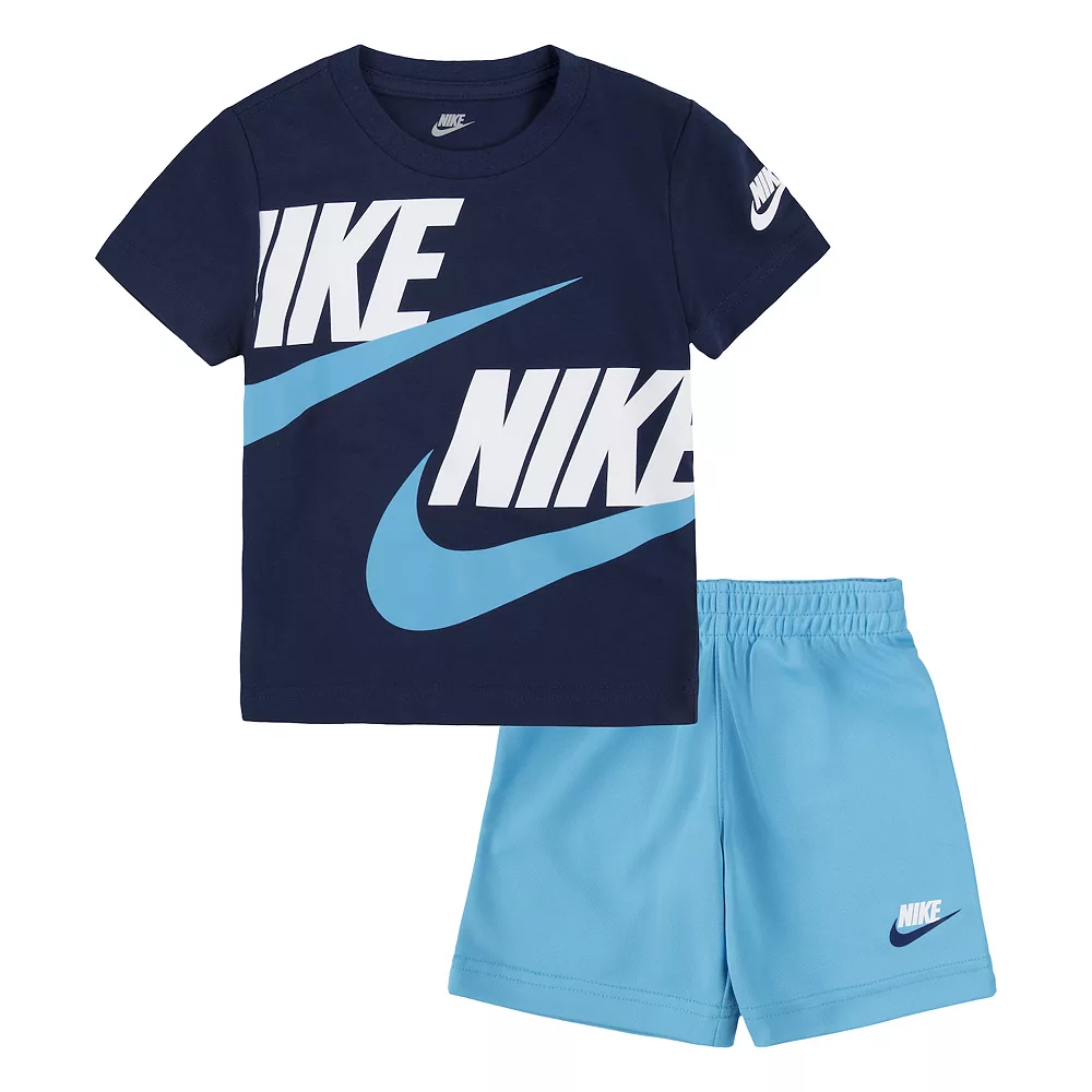 This Nike tee and shorts set keeps him so comfy and sporty.