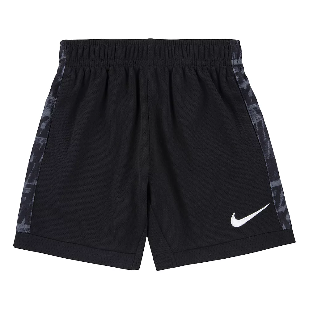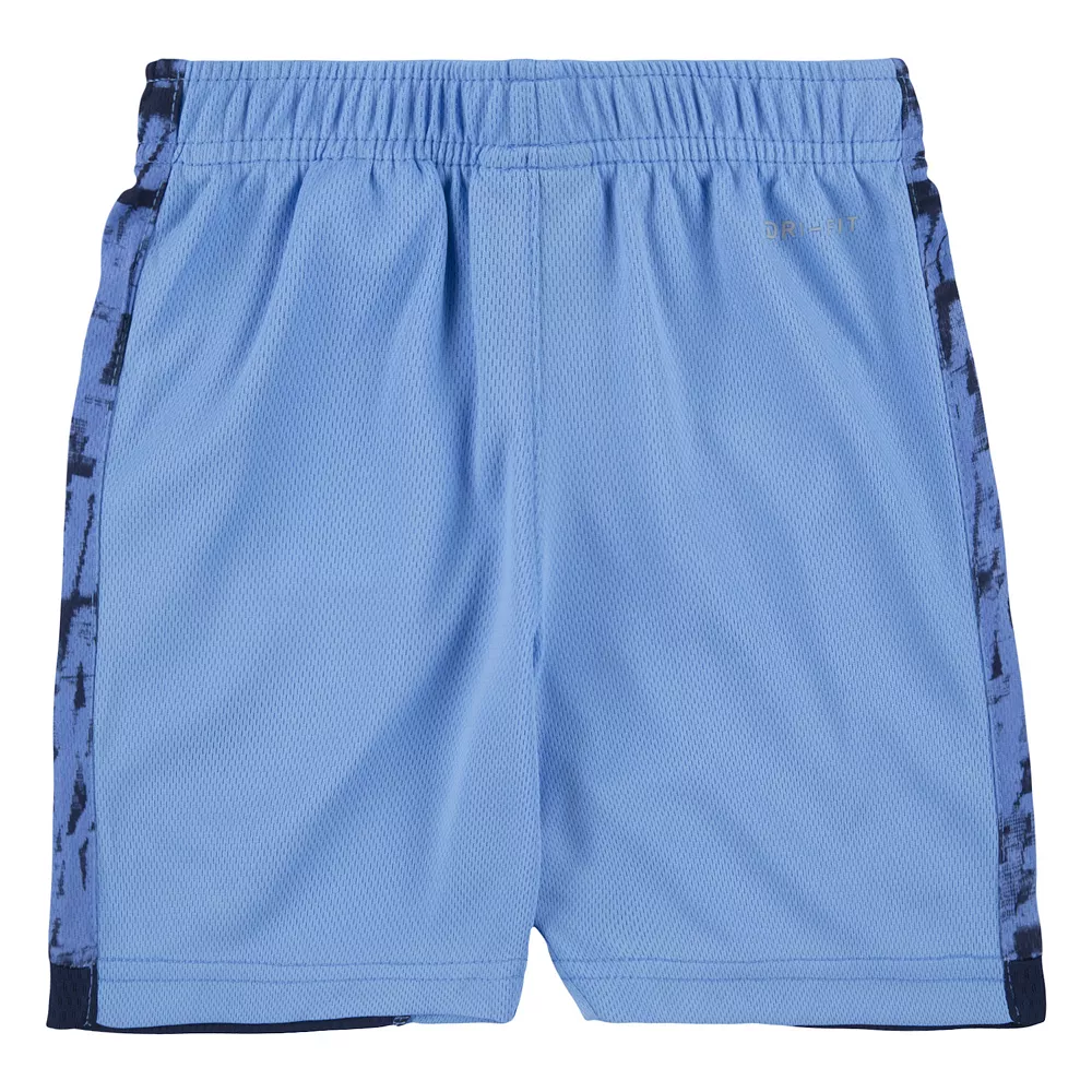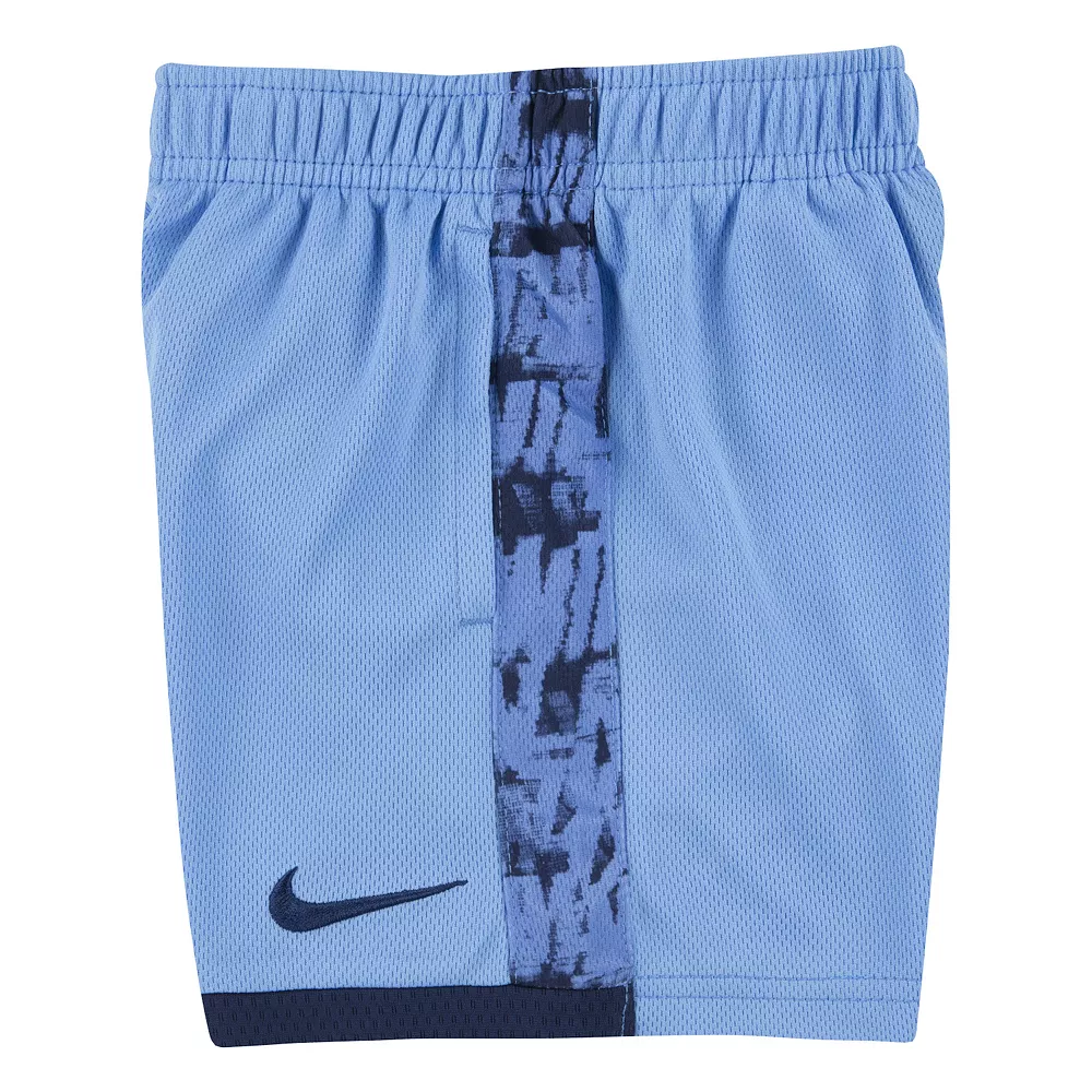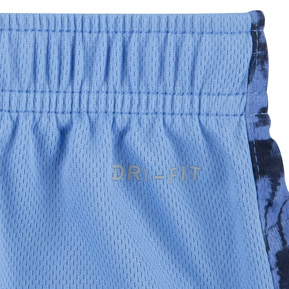 He’ll look cute while staying dry and comfy in these toddler boys’ Nike DRI-Fit tie dye stripe shorts.