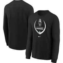 Let your youngster show their growing Las Vegas Raiders passion by grabbing this Icon T-shirt from Nike. It features striking Las Vegas Raiders graphics and a classic design that can easily match any outfit. Plus, the long sleeves and soft fabric make it the perfect top for chilly weather.