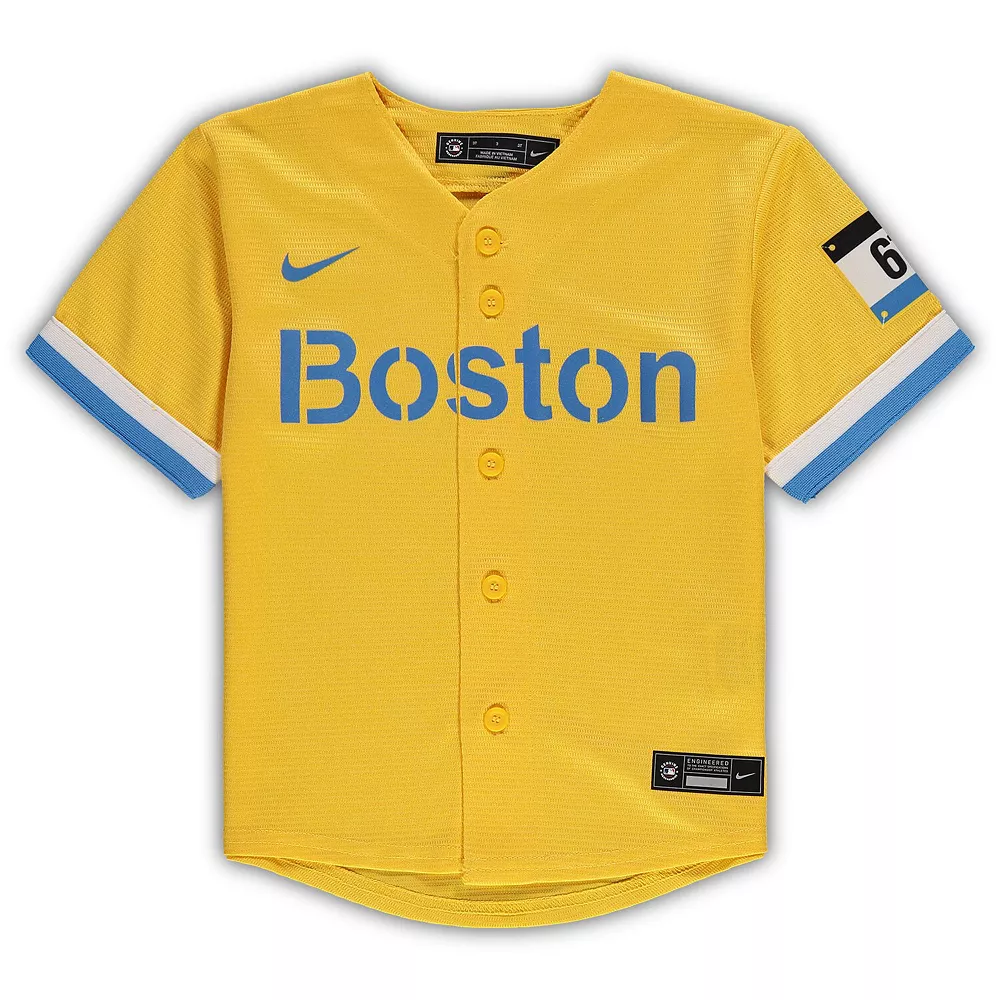 Gear your kiddo up and get them excited for Boston Red Sox game day with this 2021 MLB City Connect Replica jersey from Nike. It features a heat-sealed applique on the shoulder and jock tag near the hem, as well as exciting team graphics on the front. They’ll look just like their favorite players thanks to the full-button front, so be sure to start their Boston Red Sox fandom early with this top.