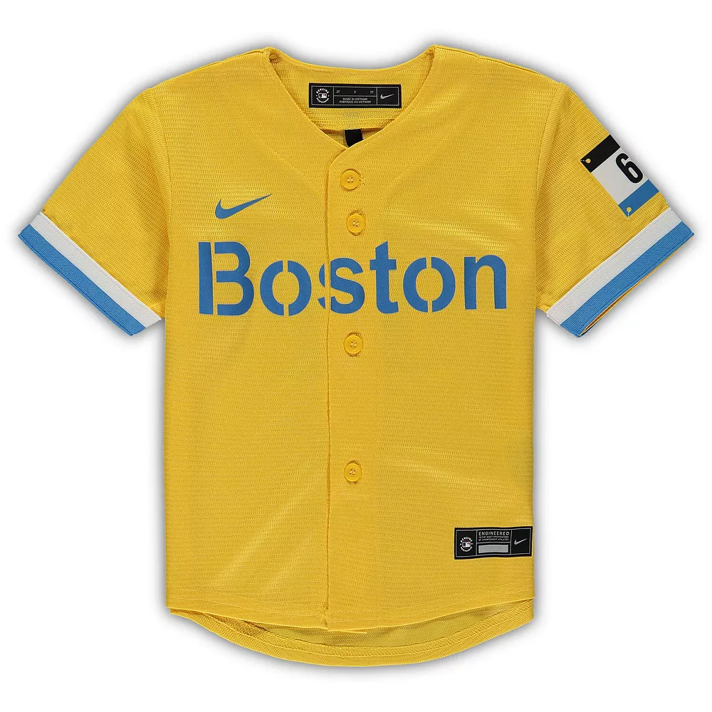 This City Connect Replica jersey from Nike shows everyone that your youngster has Boston Red Sox spirit equivalent to Rafael Devers. It features a striking design and Boston Red Sox graphics, similar to the one Rafael Devers wears on the field. Plus, the droptail hem and lightweight fabric keep your youngster comfortable all day long.