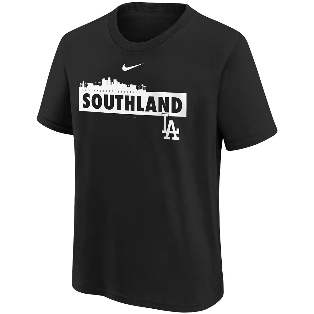 Gear up your young Los Angeles Dodgers fan for the ballpark with this Nickname Skyline T-shirt from Nike. It features distinctive graphics of the city the Los Angeles Dodgers call home for a standout piece in their collection. Designed with soft, breathable fabric, this tee makes every day feel like game day.