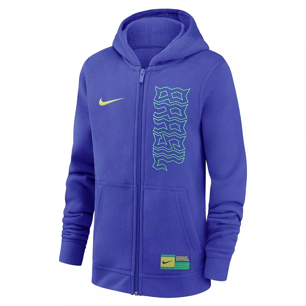Upgrade your kiddo’s rotation of official Brazil National Team apparel by adding this Club full-zip hoodie to their closet. It features the team’s name spelled out in a circle on the back and the iconic Nike logo embroidered on the chest, making it ideal for displaying your young fan’s die-hard Brazil National Team fandom. The fleece lining is sure to keep your youngster warm, cozy and ready to cheer on their beloved squad.