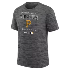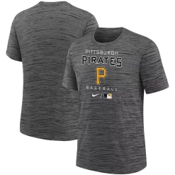 Make the Pittsburgh Pirates season even more enjoyable with this Authentic Collection Practice Velocity T-shirt from Nike. It wicks away moisture using Dri-FIT technology to keep the fabric feeling dry and comfortable. In addition, the printed Pittsburgh Pirates graphics are highlighted by a striking space-dye pattern.