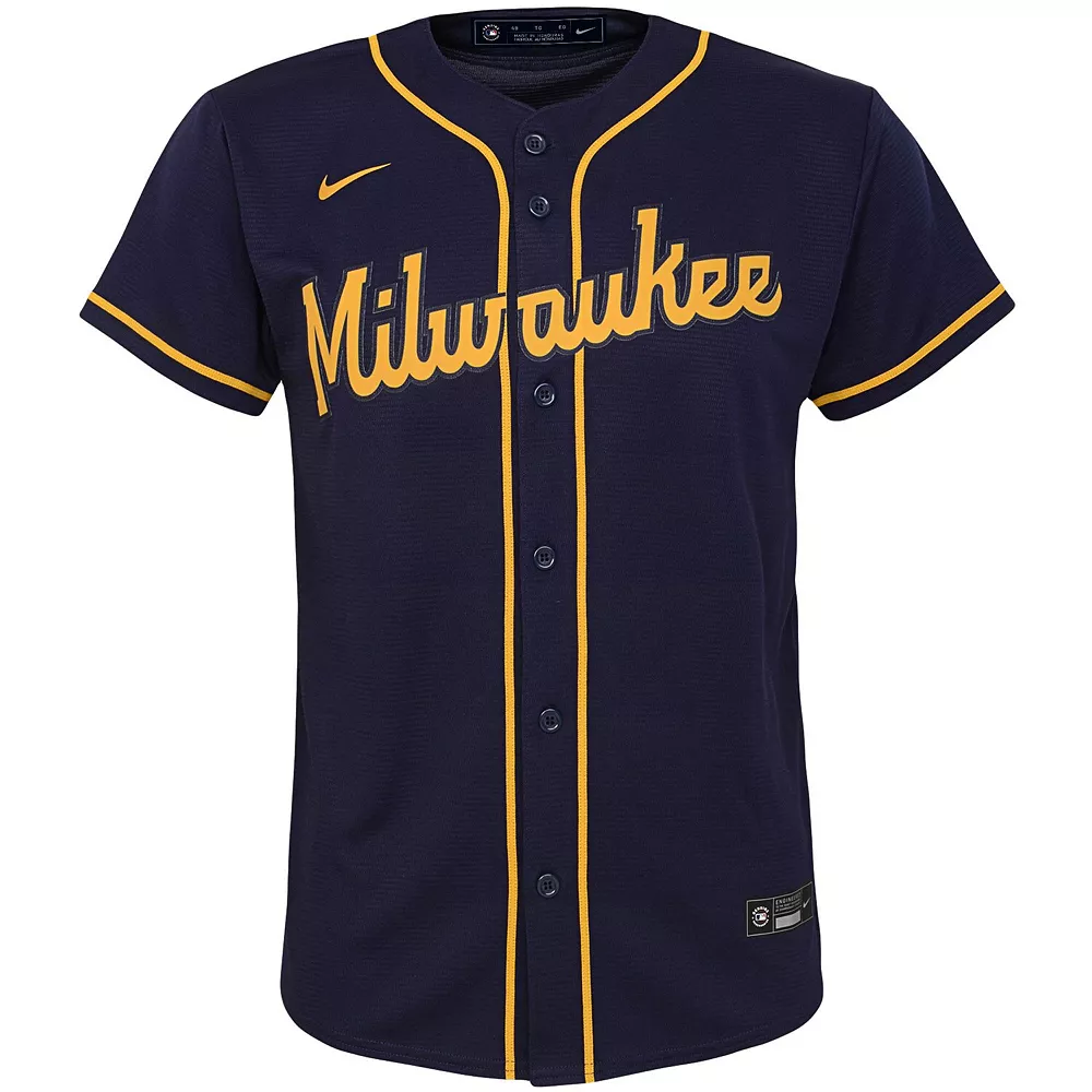 Whether you’re watching with your young fan from the couch or within the stadium, they’ll be the biggest Milwaukee Brewers fan around when they sport this Christian Yelich Alternate Replica Player Jersey! This Nike jersey features bold Milwaukee Brewers graphics that will showcase your team pride no matter where you watch the game. The moisture-wicking technology will keep them comfortable all game long.