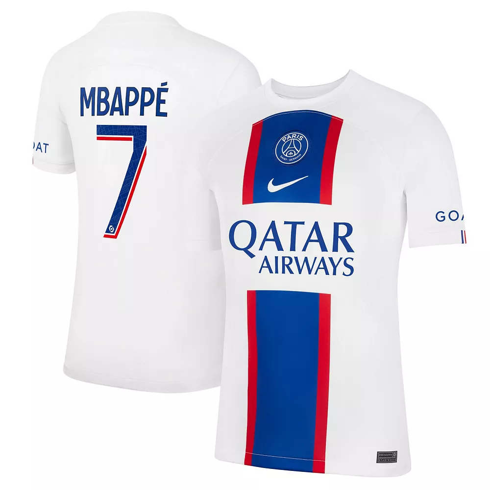 Your young fan will be pumped up to support Paris Saint-Germain when you grab them this Kylian Mbappe 2022/23 Third Breathe Stadium Replica Player Jersey. This Nike jersey features Dri-FIT technology that will keep your little one dry and comfortable for all 90 minutes of the match. Its replica design and Paris Saint-Germain graphics will have them feeling like their favorite player when they take the pitch on matchday.