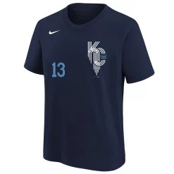 This special Kansas City Royals 2022 City Connect Salvador Perez Name & Number T-Shirt from Nike is inspired by the city’s most common nickname City of Fountains, claiming to have more fountains than any other city in the world. The colorway is a nod to the city’s ritual of dying the fountains when the Kansas City Royals makes a playoff run. The uniform draws from prominent Kansas City icons and pays tribute the beloved design of the city flag.