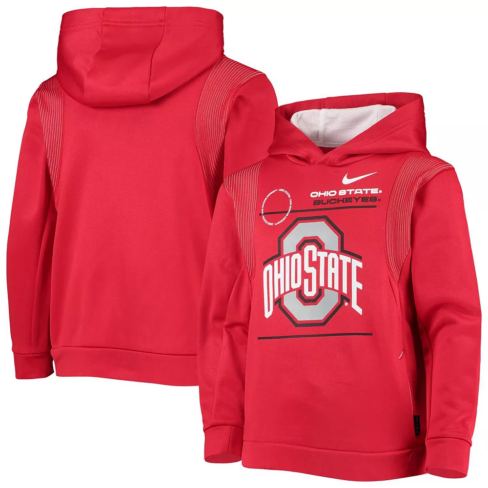 A drop in temperature won’t stop you from cheering on the Ohio State Buckeyes, so snag this Nike hoodie to stay cozy during the game. This midweight pullover features moisture-wicking Dri-FIT technology and Nike Therma fabric which helps regulate your body heat. Designed with eye-catching graphics for a sleek look, this team hoodie is the perfect addition to your Ohio State Buckeyes cool-weather gear and shows everyone that you’re a die-hard fan.