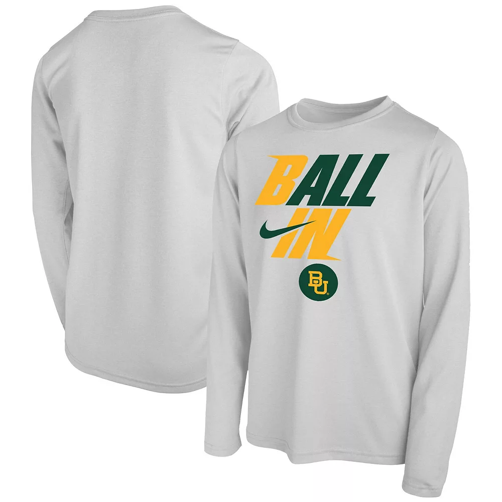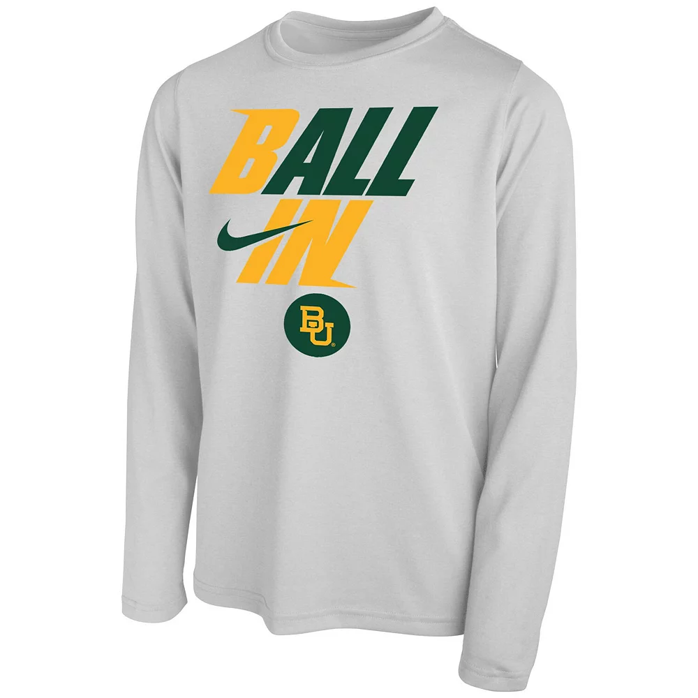 As an avid Baylor Bears fan, your youngster never miss a minute of the action! Get them pumped up and ready for the next game by grabbing this Ball In Bench Long Sleeve T-Shirt. This Nike tee features bold graphics that ensure your kiddo’s Baylor Bears pride is on full display.