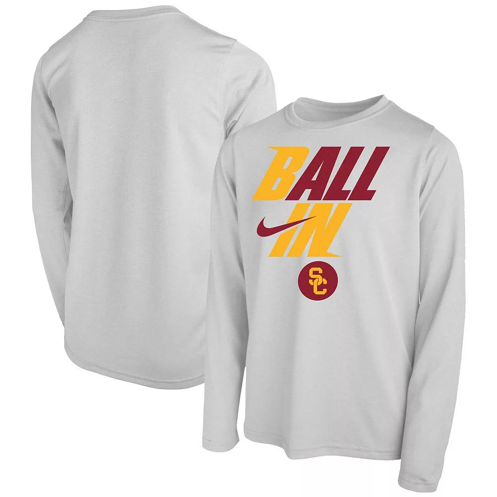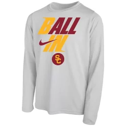 As an avid USC Trojans fan, your youngster never miss a minute of the action! Get them pumped up and ready for the next game by grabbing this Ball In Bench Long Sleeve T-Shirt. This Nike tee features bold graphics that ensure your kiddo’s USC Trojans pride is on full display.